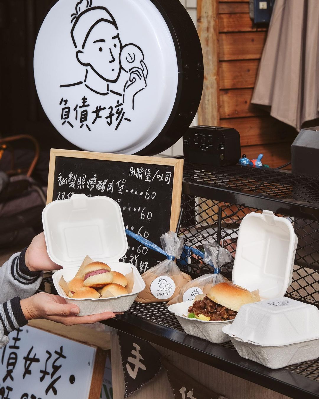 ▼「負債女孩」是由兩個開朗可愛的女孩共同經營,因兩人都有背學貸而得名,簡約的餐車充滿設計感,Logo也是超可愛,讓人看到都是先忍不住拍一波再說~