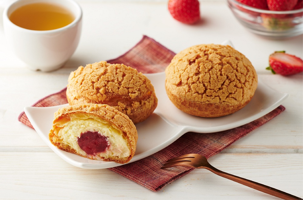 ▼「草莓雙餡菠蘿泡芙」一條龍方式生產,現烤現做並立即冷凍,將香酥表皮、奶油及草莓餡料完美融合。