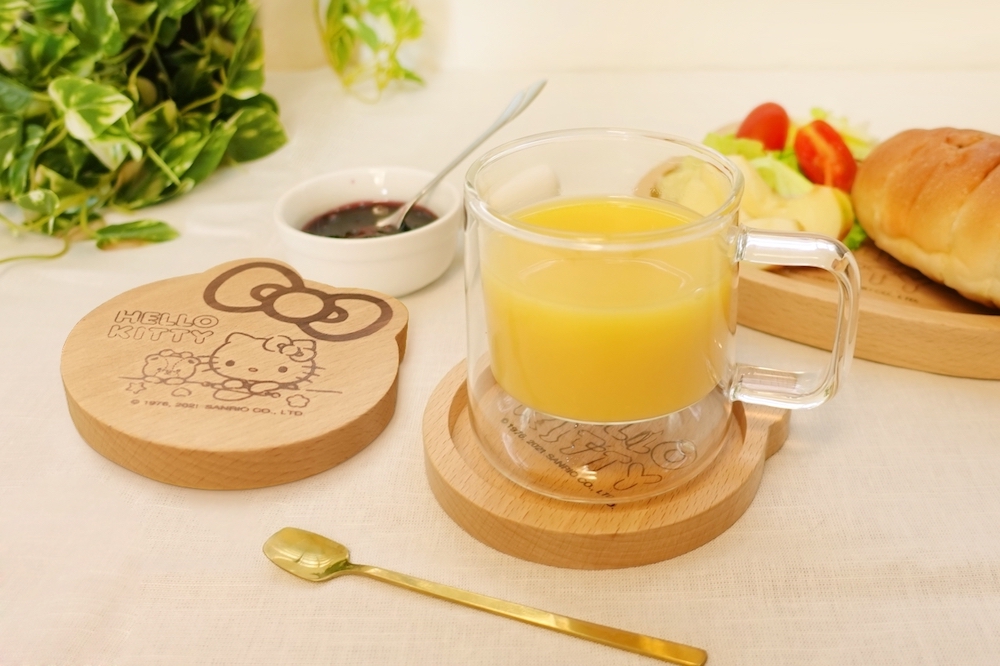 ▼墊著「Kitty造型原木隔熱墊」(NT$ 450)可愛臉蛋造型妝點氣氛,厚實圓潤不導熱的特色保護桌面,再拿出喜歡的茶杯搭配「Kitty兩用杯墊」(NT$ 199)可乘著杯子也可以放上小茶點,亦可作防塵杯蓋使用,而一天下來無論再怎麼忙碌,都要記得留點時間好好吃頓飯,犒賞今天的自己,親自下廚或外帶美食都好!