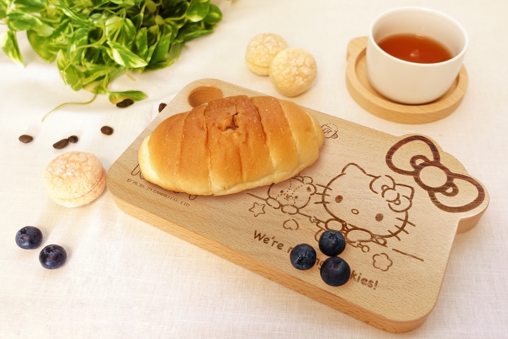 ▼「Kitty造型原木麵包盤」(NT$ 499)從早晨的鬆軟麵包佐上香甜果醬開始,午後嘴饞就放上起司、堅果,享受營養又飽足,或是沏上一壺好茶~