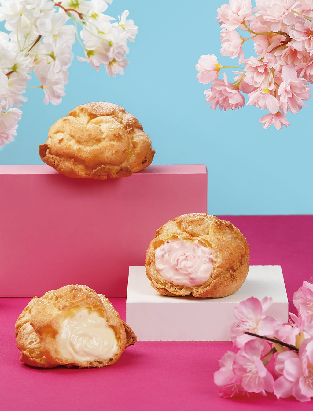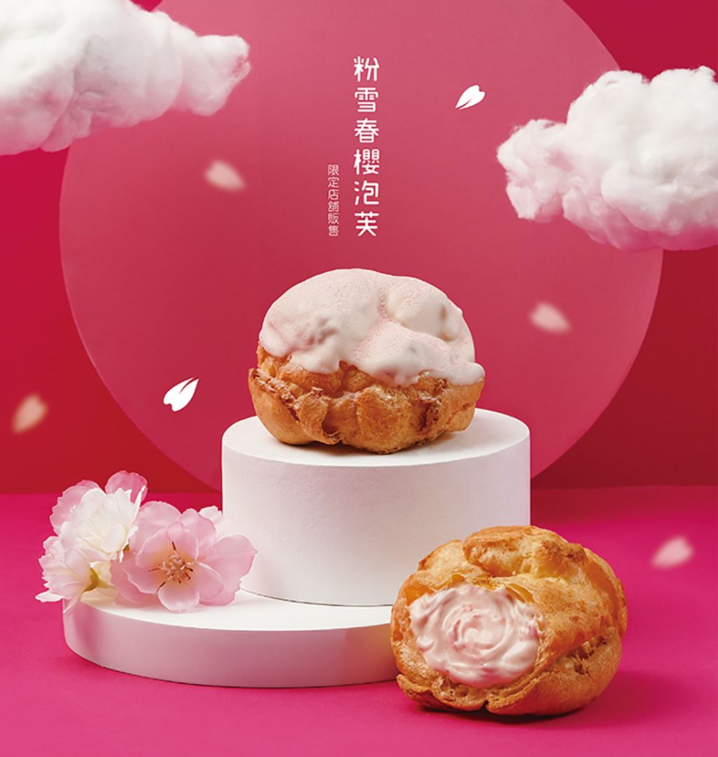 【粉雪春櫻泡芙】限店販售:環球南港車站店 B1F、CityLink松山車站店 1F、宏匯廣場店 7F