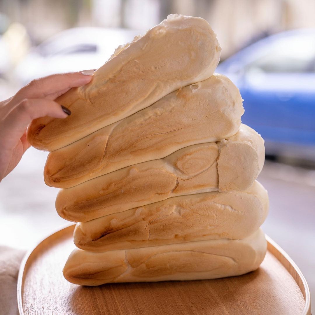 ▼這件超人氣「包記饅頭店」提供多款奶素、亞麻仁雜糧、麥麩等手工饅頭,哪一款商品都各自擁有一票粉絲~而說到店裡的鎮店之寶,絕對是這款每日限量的「羊角貼鍋饅頭」無誤!