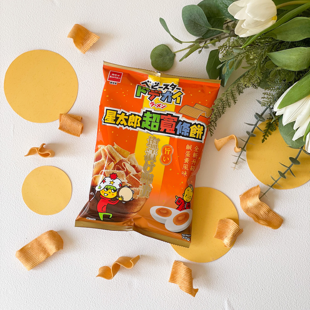▼「星太郎超寬條餅-鹹蛋黃風味」(售價39元)便利商店通路獨家,經典暢銷鹹蛋黃香濃好吃,以超寬條餅麵體完美呈現人氣濃厚鹹蛋黃風味,濃厚鹹蛋黃配上淡淡奶油香,口感層次豐富。