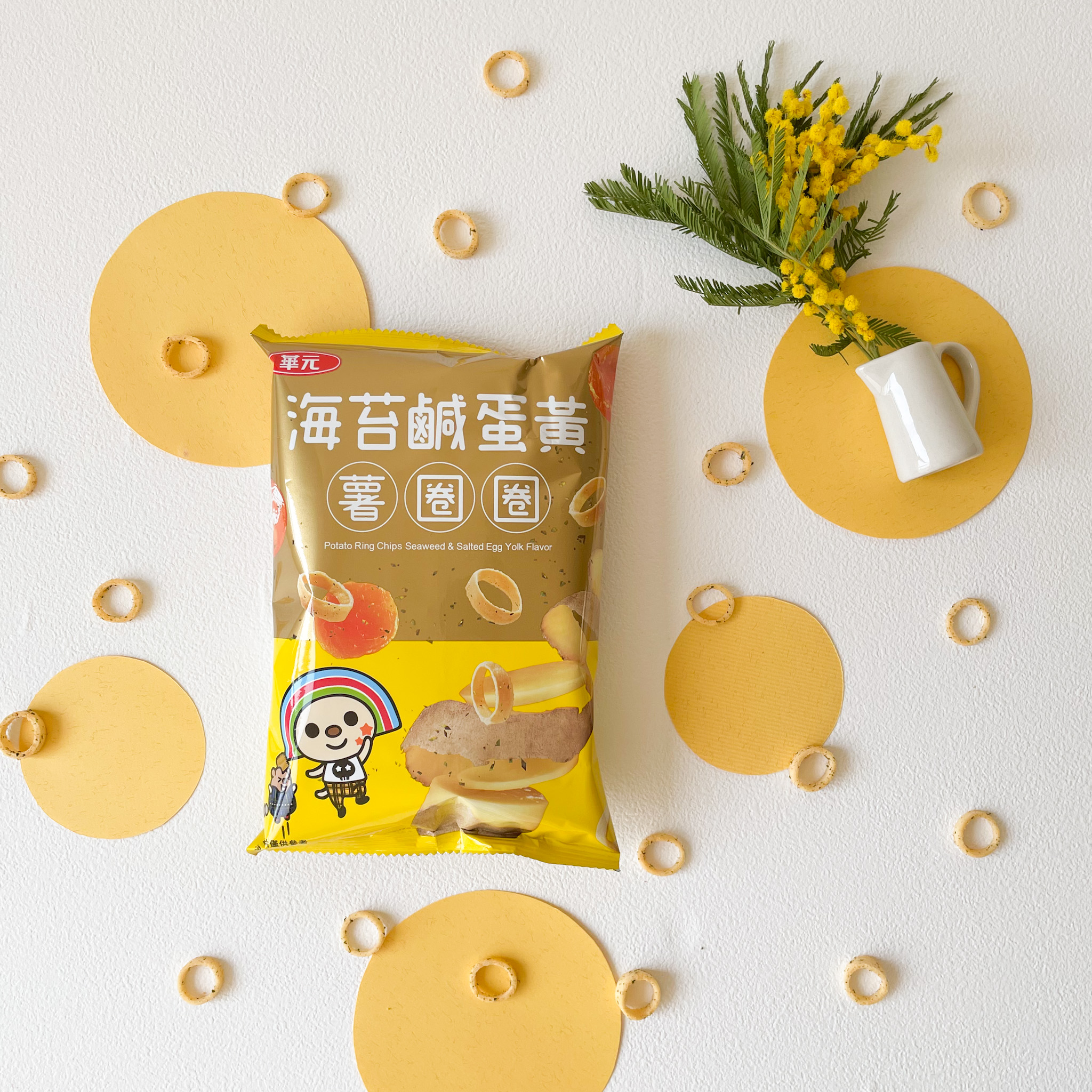 ▼「薯圈圈薄切-海苔鹹蛋黃」(售價30元)便利商店通路獨家販售,獨特的薯圈圈薄切餅體鬆脆爽口,搭配特有的海苔及鹹蛋黃香氣越吃越涮嘴!