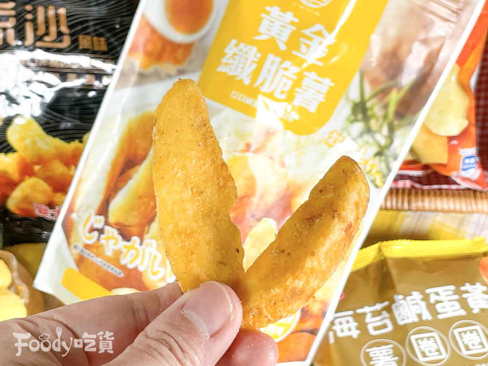 ▼「黃金纖脆薯-鹹蛋黃口味」(售價179元)便利商店通路獨家,原塊厚切口口鹹香,馬鈴薯原塊佐以鹹蛋黃完美比例調味。
