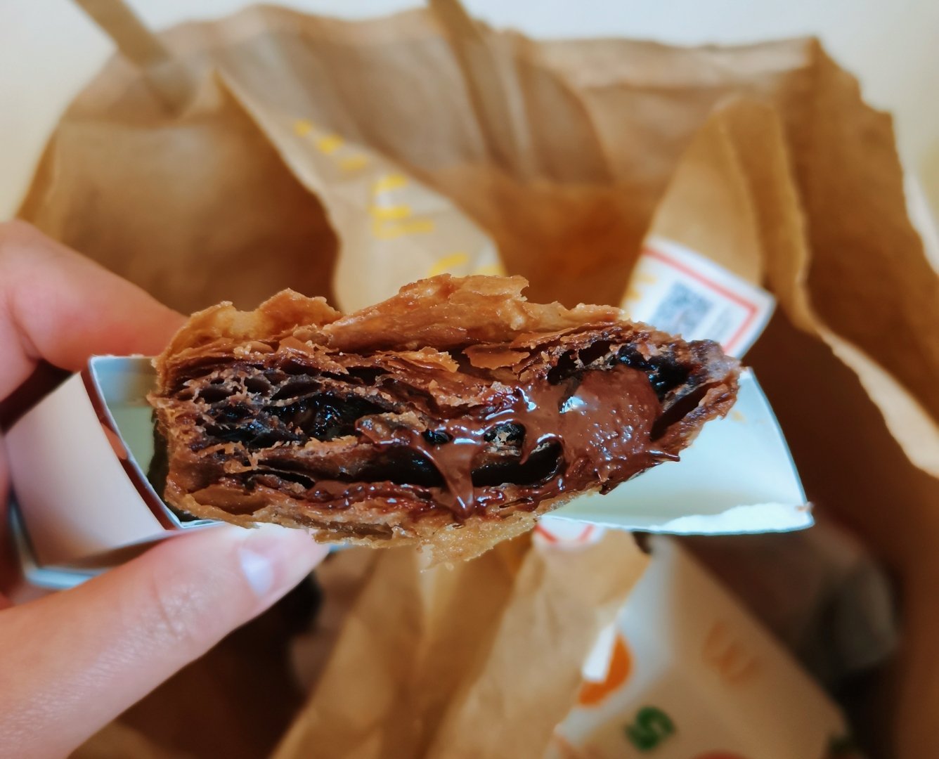 ▼還有苦甜大人味的「黑黑好巧三角派」,外層酥脆多層次可可派皮,搭配偏苦的濃醇巧克力醬,啊啊啊台灣什麼時候才要跟進啊~?