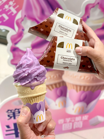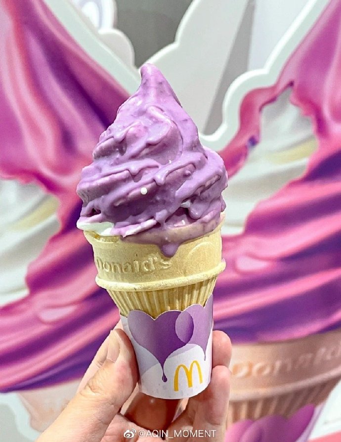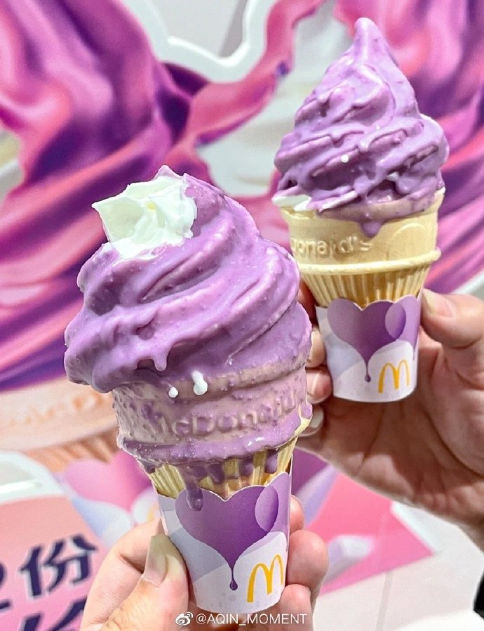 ▼除了可愛的太陽蛋拿鐵外,中國麥當勞還推出會讓芋頭控原地升天的「香芋脆皮甜筒」,在原味霜淇淋上淋好淋滿香芋脆皮,偏甜的口味螞蟻人吃最剛好。