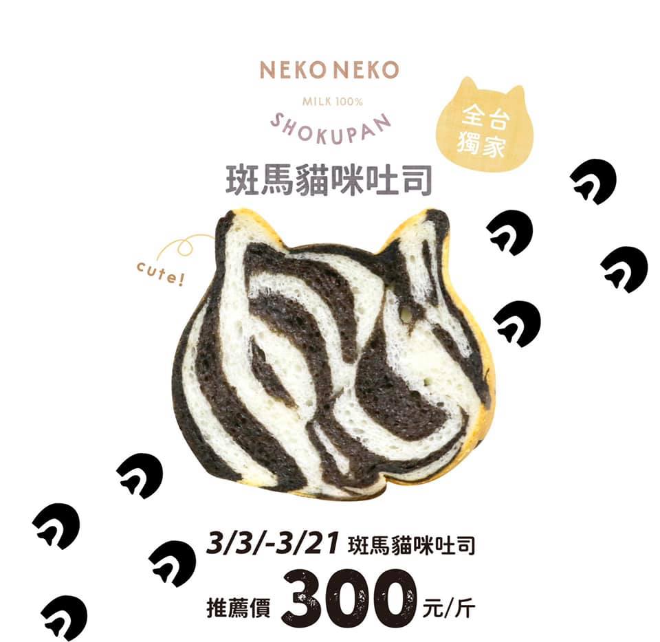2021年03月03日各位吐司控們!來自名古屋的人氣「貓咪吐司」又來快閃啦~這次將於即日起在誠品信義店快閃至3/21,為期19天信義區駐點快閃,更推出模樣吸睛的「斑馬貓咪吐司」,不規則的黑白花紋圖樣一整個萌萌噠~