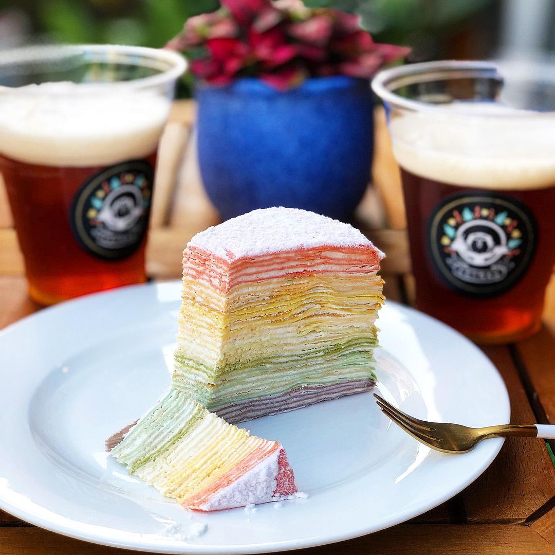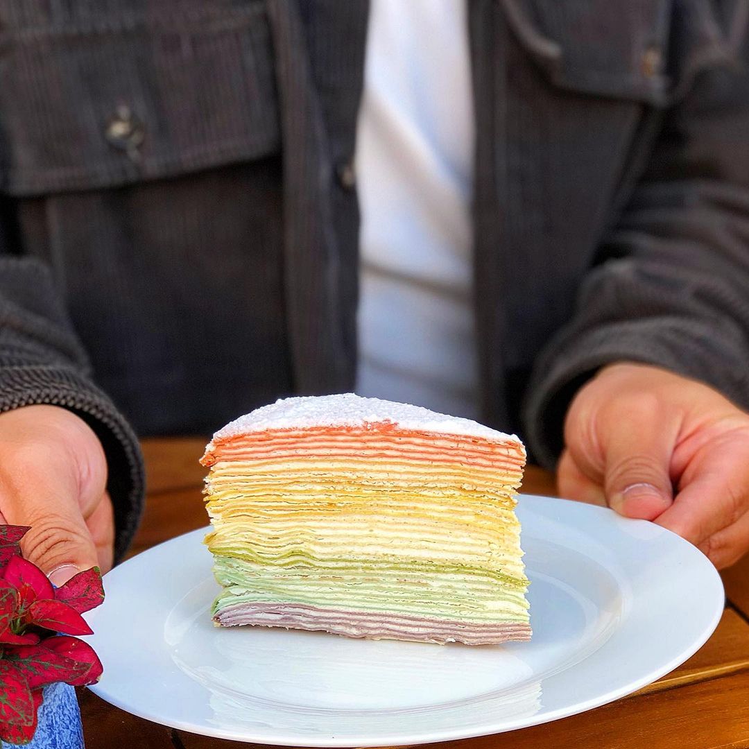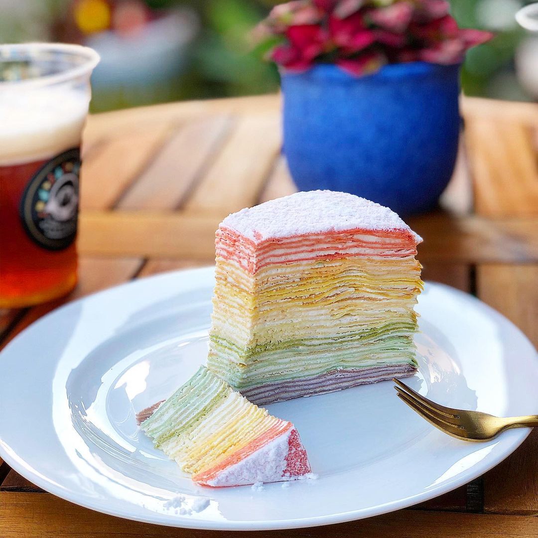 ▼「彩虹千層」不只顏值超高,帶有濕潤度的千層蛋糕,搭配清爽不膩口的鮮奶油一起吃,入口的感覺完全不會有負擔,吃完超幸福~