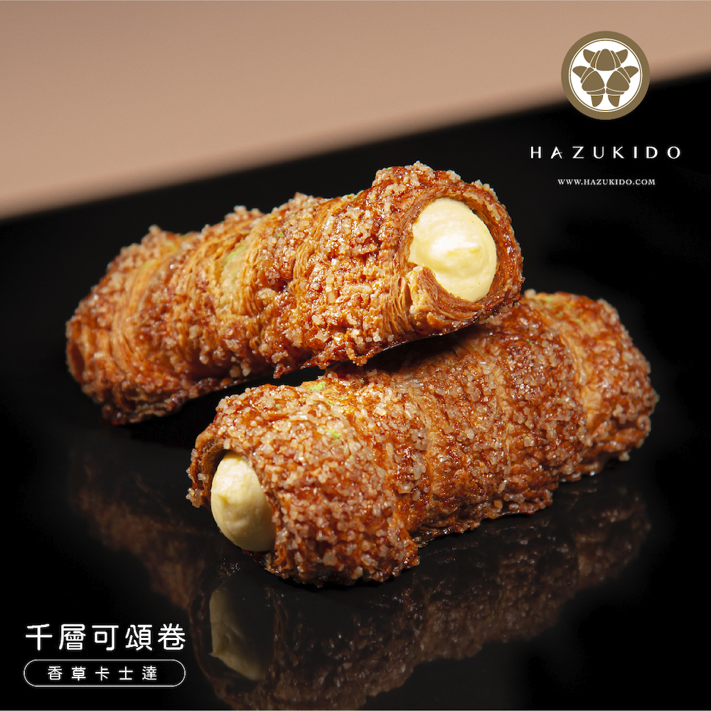 ▼八月堂首家全新二代店將在3/10(三)在統一時代百貨台北店B2正式開幕,八月堂二代店除了經典的可頌口味多達二十幾種之外,更推出全台獨家商品「千層可頌卷」,耗費多時研發出獨家手捲技術創造出酥脆且層次分明的可頌卷,內層包裏輕爽香草卡士達,微甜帶有香濃牛奶香氣,入口輕脆又滿餡的口感讓人無法抗拒,顛覆對可頌造型的想像。