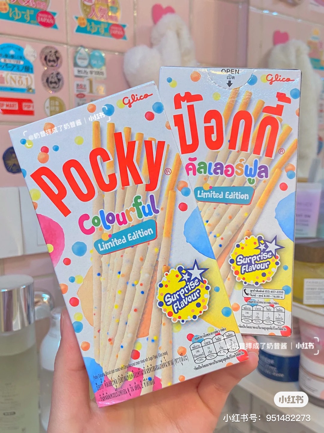 目前這款「柑橘彩虹糖口味 Pocky」只有在泰國限定販售,有興趣的朋友可以找找看代購喔~