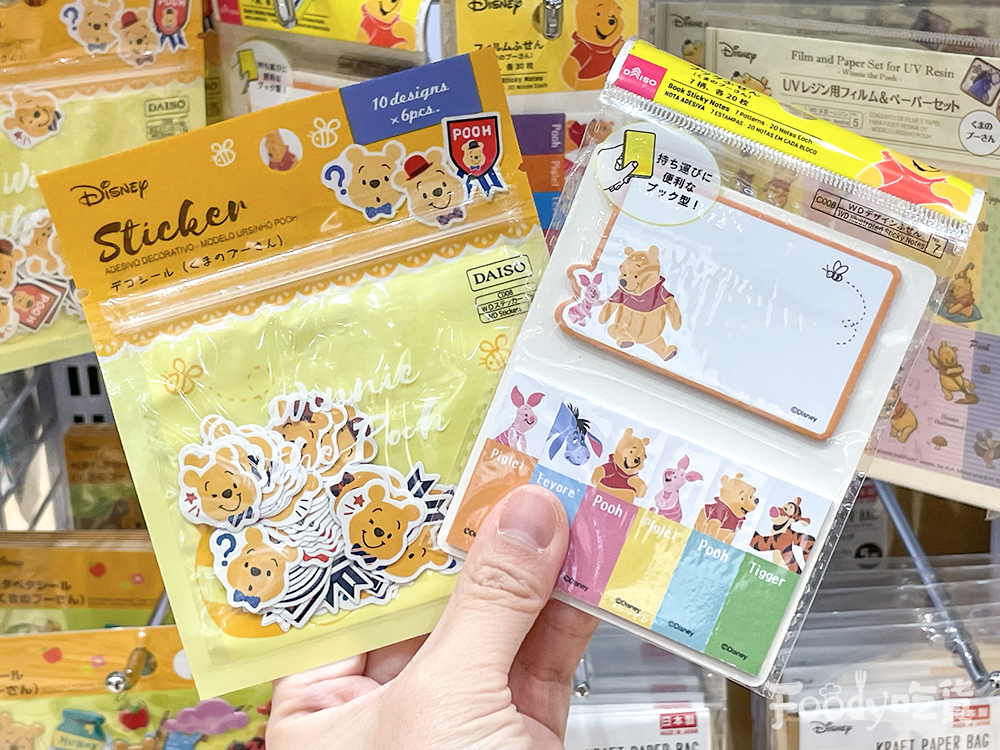 ▼這次的商品種類超豐富,不論學生族需要的文具小物、便條紙、彩色書籤等等,每個商品都印上滿滿的小熊維尼,即使不會用到文具也會讓人忍不住想要把他們帶回家~