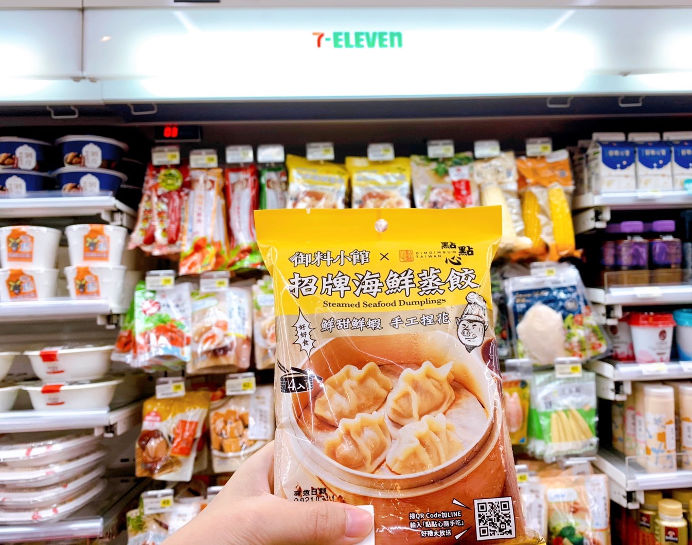 ▼7-ELEVEN將於10日起推出全新吊掛商品,首度攜手人氣港點「點點心」聯名合作「御料小館x點點心招牌海鮮蒸餃」(售價55元),內餡以黃金比例調製鮮甜魚蝦漿,顆顆外皮皆以手工捏花提升口感與質感。