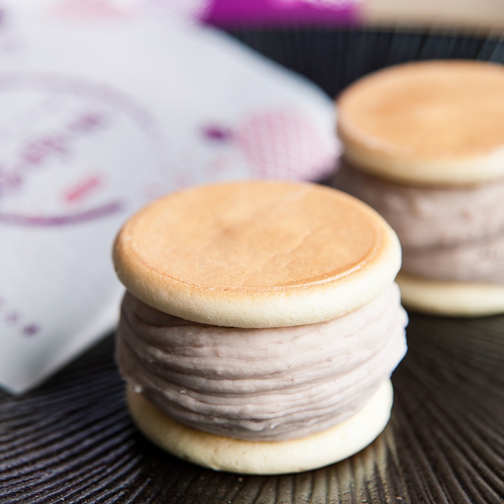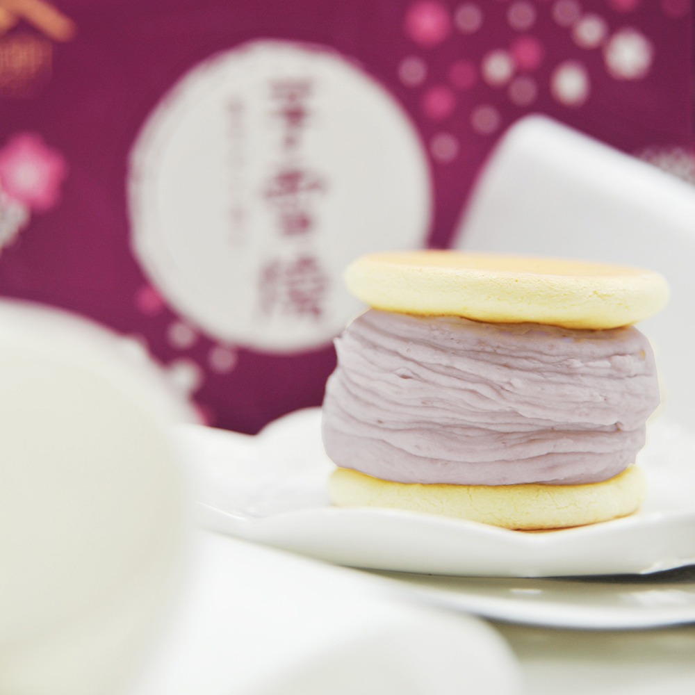 ▼芋雪燒延續日本知名和果子銅鑼燒,由蓬鬆金黃色面皮夾上綿密大甲芋泥餡,純手工製成,讓你輕咬一口便入口即化,感受濃稠滑順的甜香芋泥給你無盡甜蜜幸福。