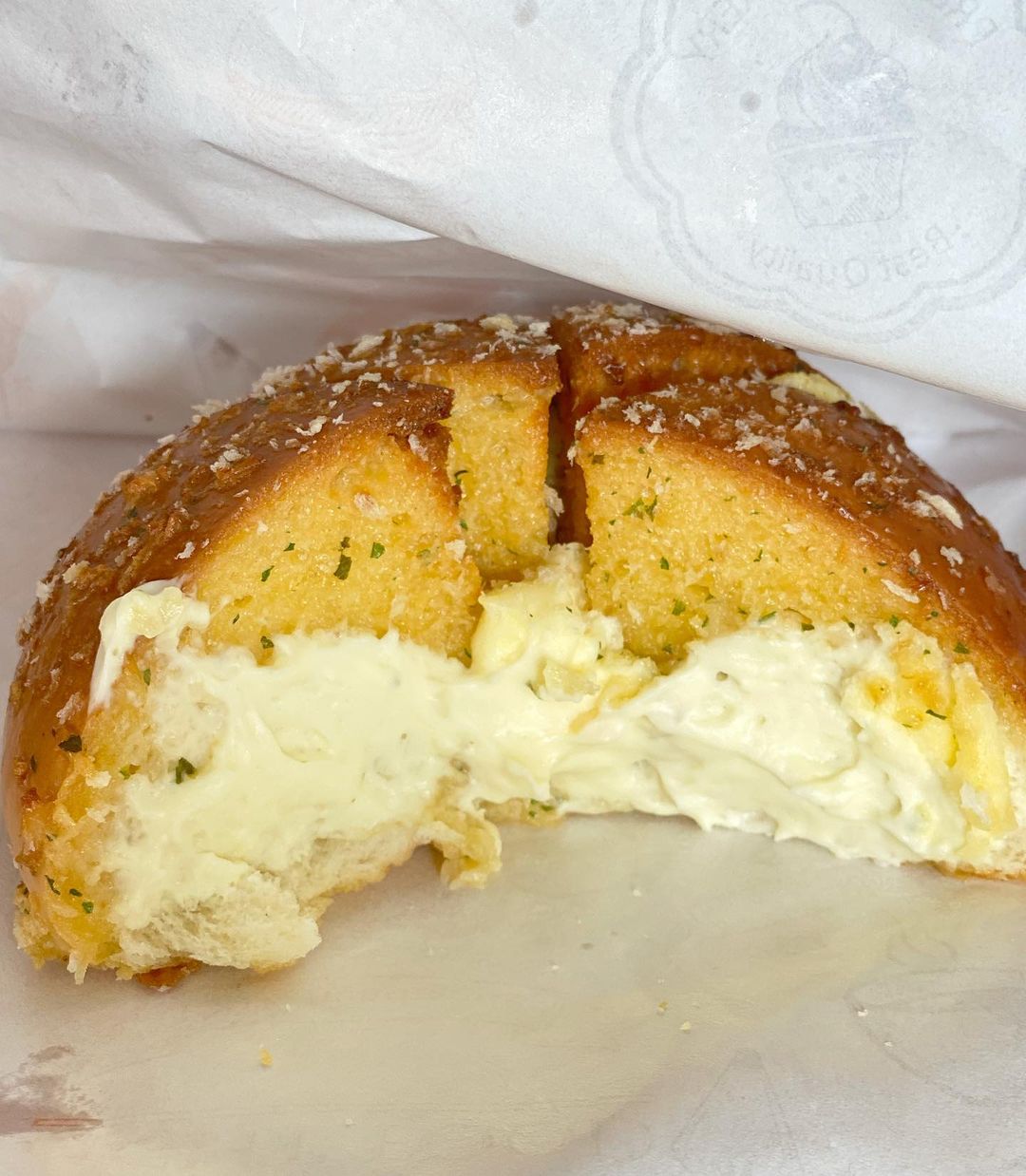 ▼一口咬下是濃烈的蒜味配上超濃郁的乳酪味,搭配上剛出爐的特製麵包,獨特的滋味絕對會讓蒜頭人欲罷不能~