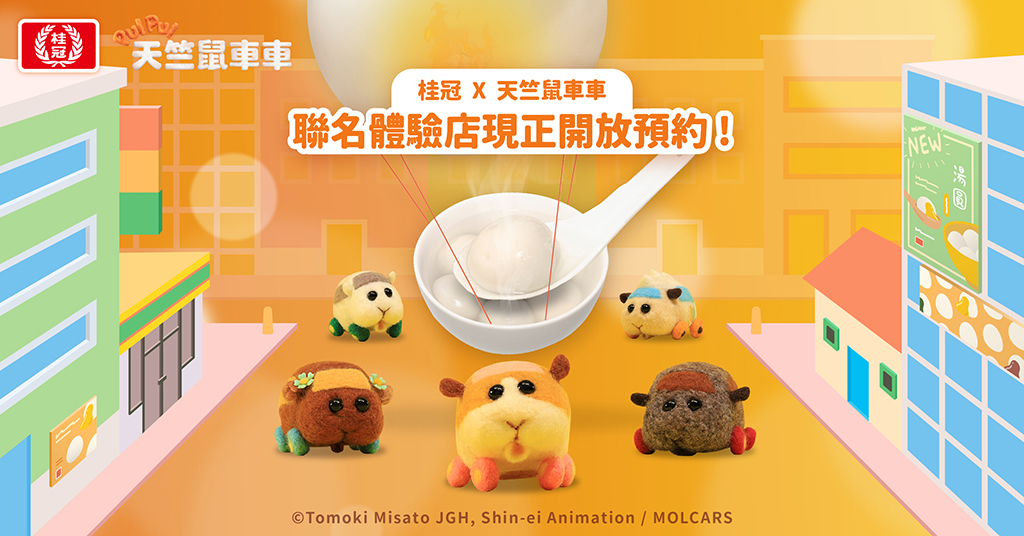 ▼新的年度,桂冠希望透過祈福話題聯名,與消費者一起共創生活心動力,因此宣布與日本超夯《PUI PUI 天竺鼠車車》合作,成為與天竺鼠車車正式聯名的第一個台灣品牌,希望藉由角色本身溫暖Q萌的意象,與湯圓傳遞幸福團圓的意涵做結合,為消費者創造幸福體驗,提供兼顧視覺與味覺的雙重感受。