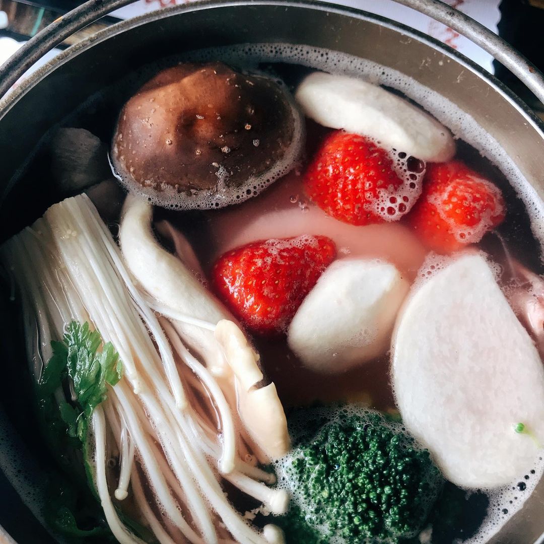 ▼本次最狂草莓料理候選人之一,「甜蜜草莓鍋」終於姍姍來遲了!煮下去湯頭會變成淡粉色,粉嫩嫩的湯底帶有清爽果香口感,還附上一盤「草莓沙茶醬」給草莓控們沾,這種貼心還真的是謝謝齁~