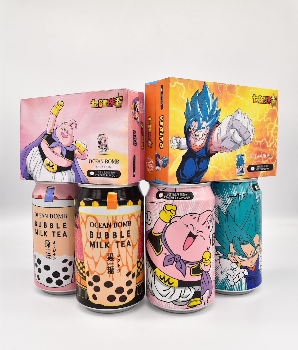 ▼除了此次推出的角落小夥伴系列飲品,OceanBomb繼前次七龍珠超以悟空、達爾、特南克斯為主角的氣泡水,加碼再推出全新兩款角色「普烏」水蜜桃風味氣泡水和「貝吉特」蘋果風味氣泡水,去年席捲珍奶風潮的限量「珍珠奶茶罐裝系列」也重回珍奶江湖,獨有台灣夜市風瓶身絕對是網美拍照必備小物,珍奶控路過看到不要忘記趕快帶回家囤貨!