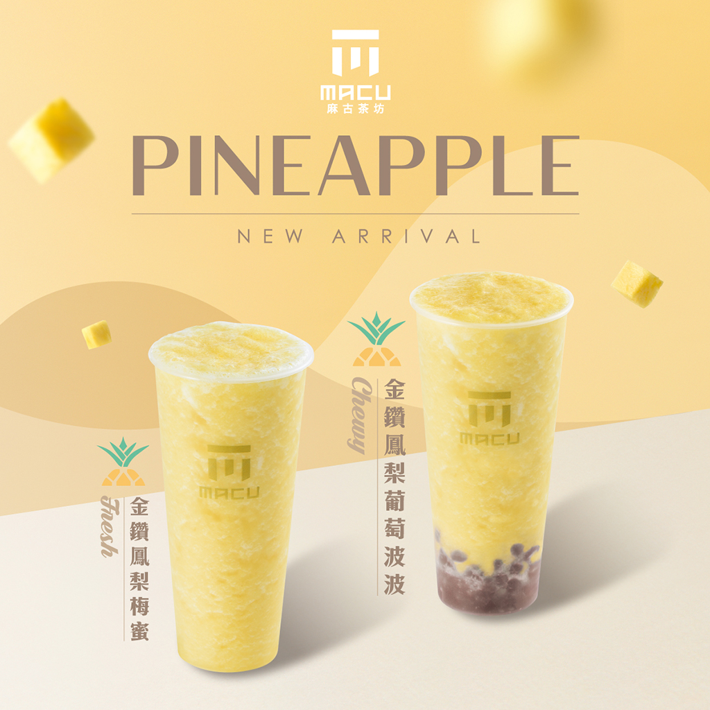 以上就是這次麻古茶坊推出的金鑽鳳梨系飲品,3/18起將搶先在28間門市試賣、3/22起全台門市開賣,飲料控們千萬別錯過!