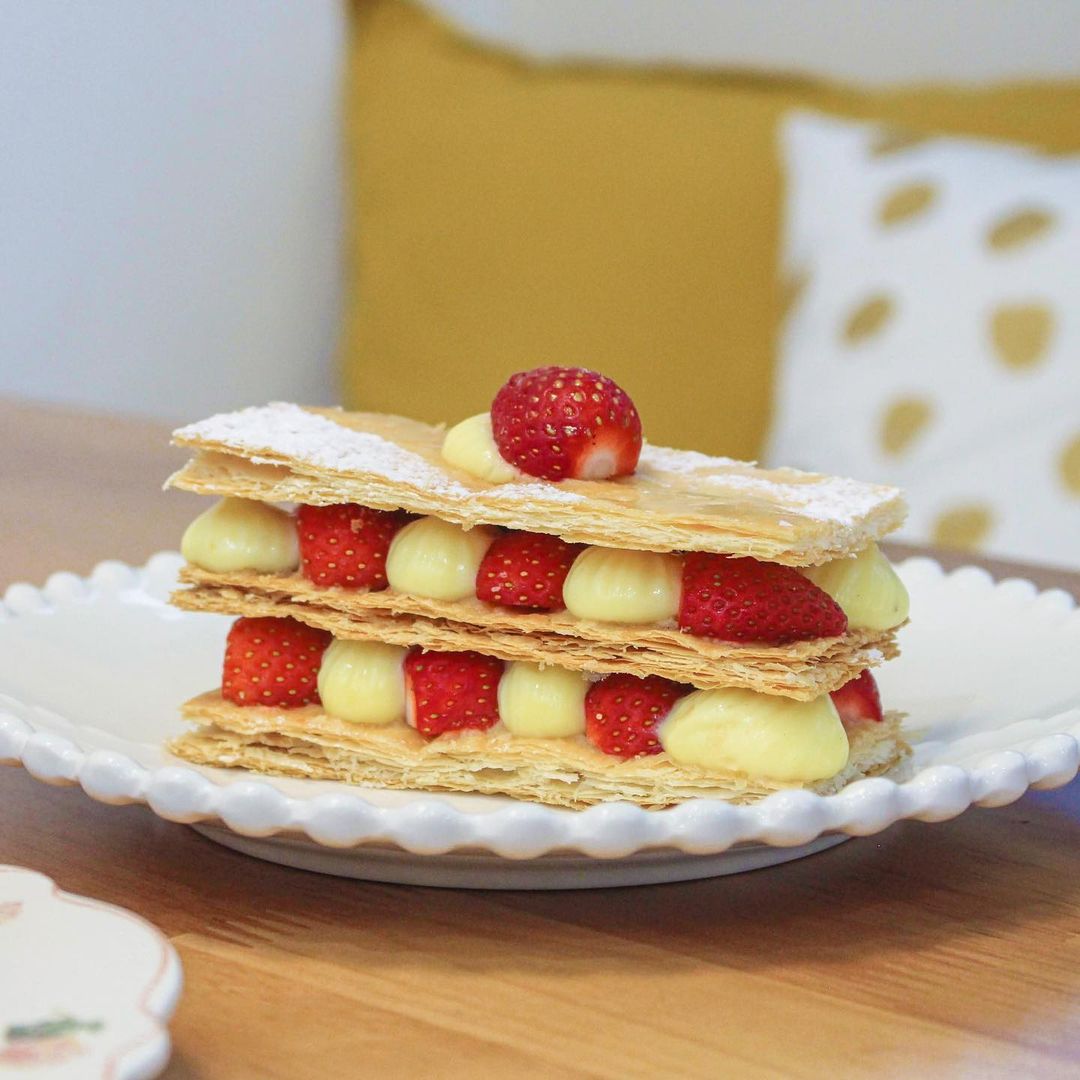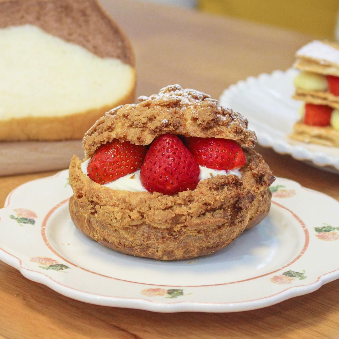 💰草莓千層酥 $180、草莓卡士達泡芙 $130、香堤鮮奶油草莓三明治 $45、胖菓子鮮奶吐司 $180