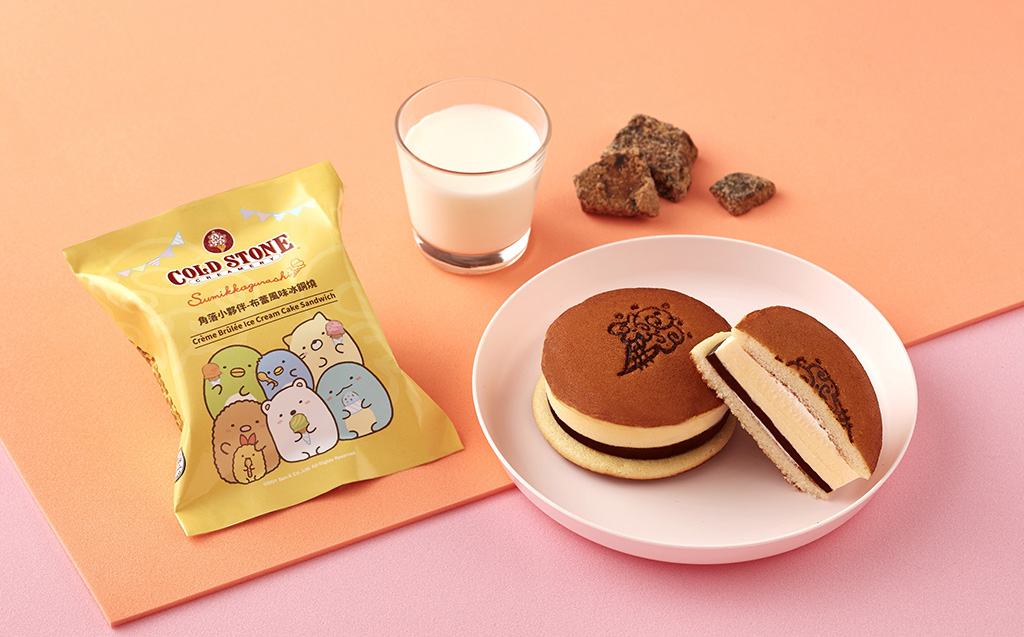▼「角落小夥伴-布蕾風味冰銅燒 72元」是全球唯一角落小夥伴跨界聯名冰銅燒,特別耗時依黃金比例調配完美滋味的布蕾風味冰淇淋,每一口極致濃郁驚艷味蕾,搭配全新開發的冰心黑糖片,Q彈口感散發濃濃黑糖香,佐淡淡蜂蜜香氣的銅鑼燒餅皮,整體搭配完美呈現童趣布蕾風貌,絕對是令大小朋友為之著迷的冰品首選。