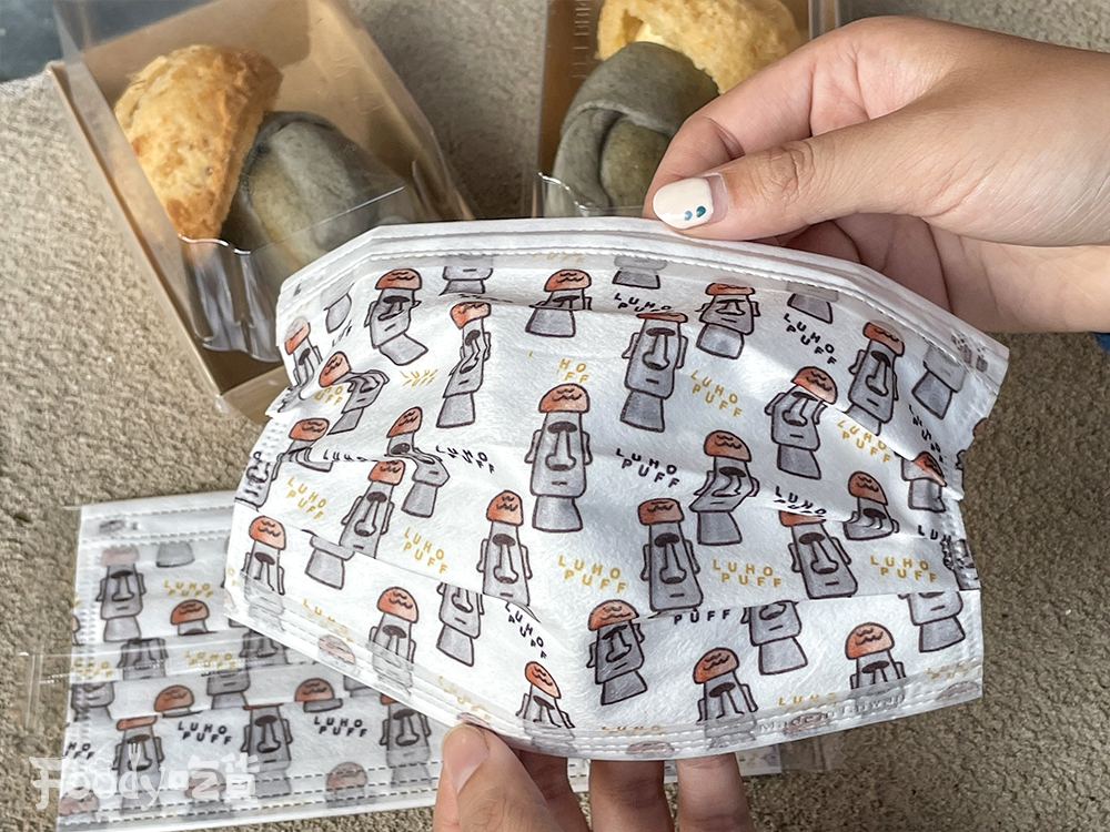 ▼除了有超吸睛的摩艾麵包之外,現在旅禾泡芙之家還有推出超可愛的「泡芙帽摩艾造型口罩」,重點是這個商品只!送!不!賣!只要購買6個摩艾麵包,就能免費獲得萌萌的泡芙帽摩艾造型口罩,這麼佛心又療癒的活動,怎麼能不用新台幣支持一下呢~