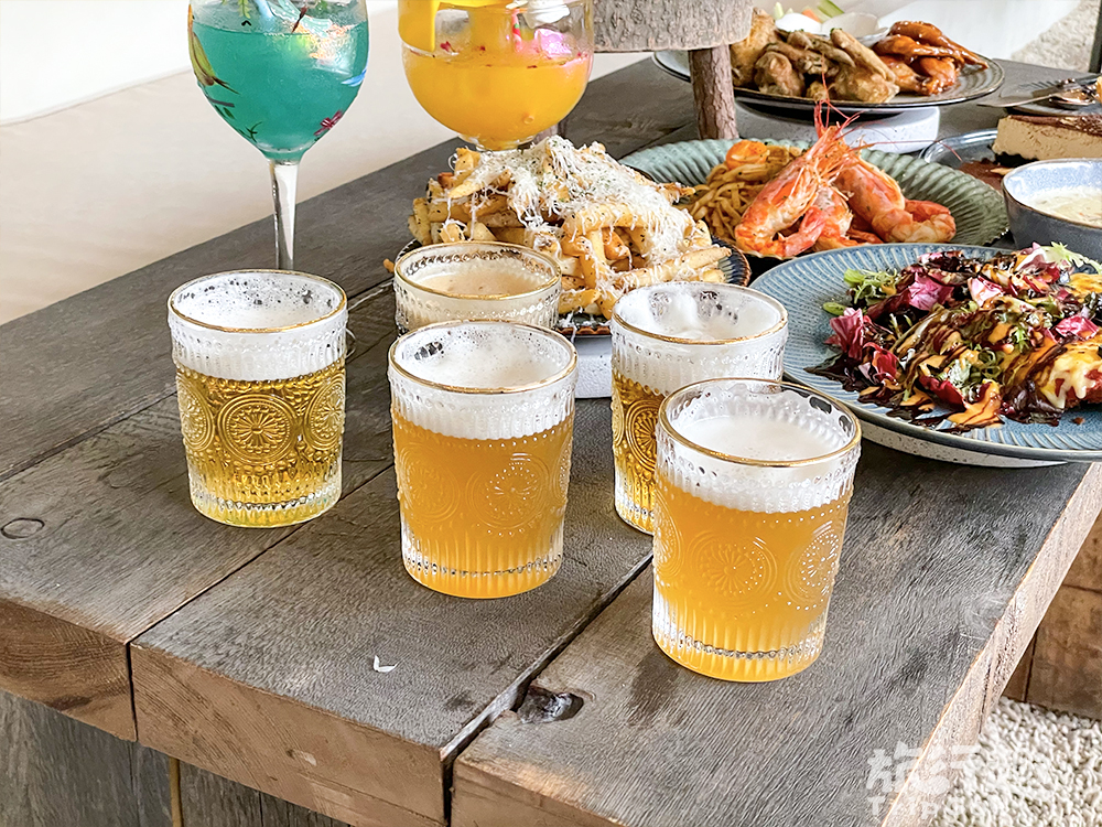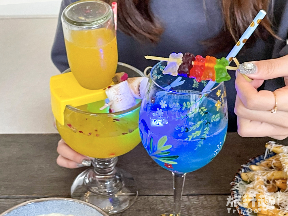 ▼酒空們來來來!「剛剛鮮釀連續技」,一次端出5杯不同款啤酒,每一種喝喝看真的超級滿足;愛喝美美酒款的人當然要點調酒,調酒們都有有著獨特的外觀與名字,喝起來順口但是超容易茫,不要一次喝太多嘿~