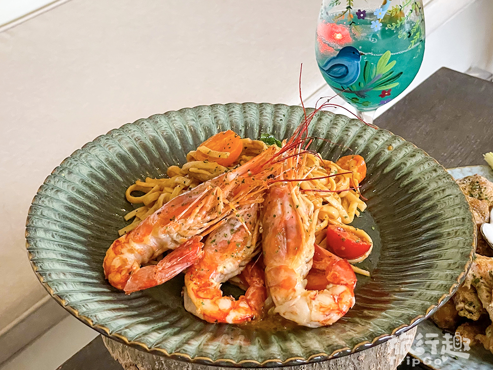 ▼義大利麵則是吃起來很軟中帶Q彈的寬扁麵,超大隻的蝦子吃起來很新鮮、充滿海味清甜,而且已經去好殼了,留下頭讓愛吃蝦頭的老饕們能夠大快朵頤,真的很貼心~