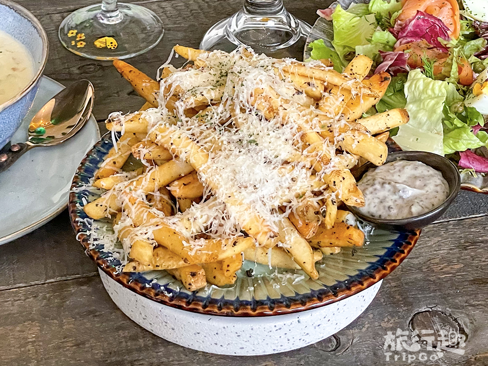 ▼還有因為吃起來實在太爽,來GumGum必點的超人氣商品「松露薯條」,薯條沾滿滿松露醬,吃起來濃郁中帶有松露獨特香氣;重點是重點是!松露醬不夠還能續加,也太爽了吧~