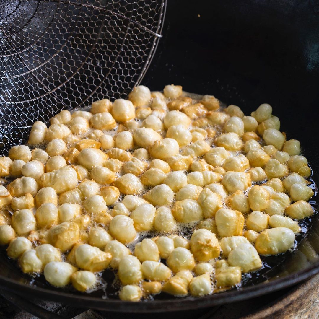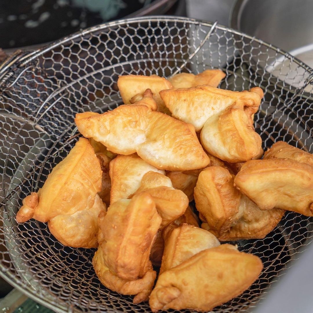 ▼阿山哥的雙胞胎麵皮都是現場做,幸運的話可以看到老闆秀刀工!接著把一顆顆生料丟進油鍋中,馬上自然膨漲、造型超療癒,隨後上色至金黃就可以起鍋開嗑啦~