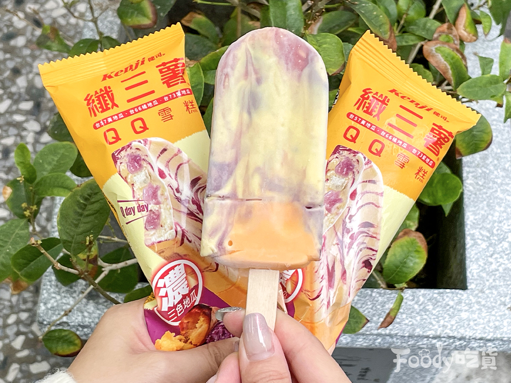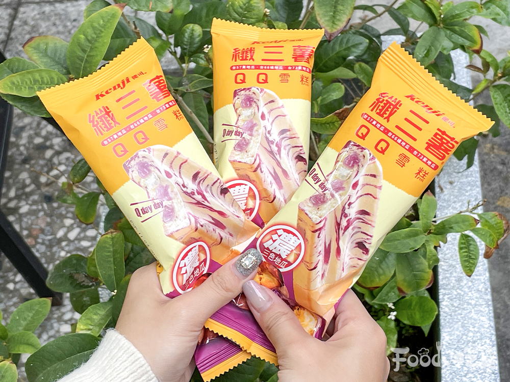 ▼地瓜控快衝 7-ELEVEN!Kengi健司今年首波推出「纖三薯QQ雪糕」,嚴選台57黃地瓜、台66橘地瓜、台73紫地瓜化身成夏日消暑冰品,外包裝放上餅乾包裝同樣的「纖三薯」字樣,在眾多冰品中特別吸睛!!