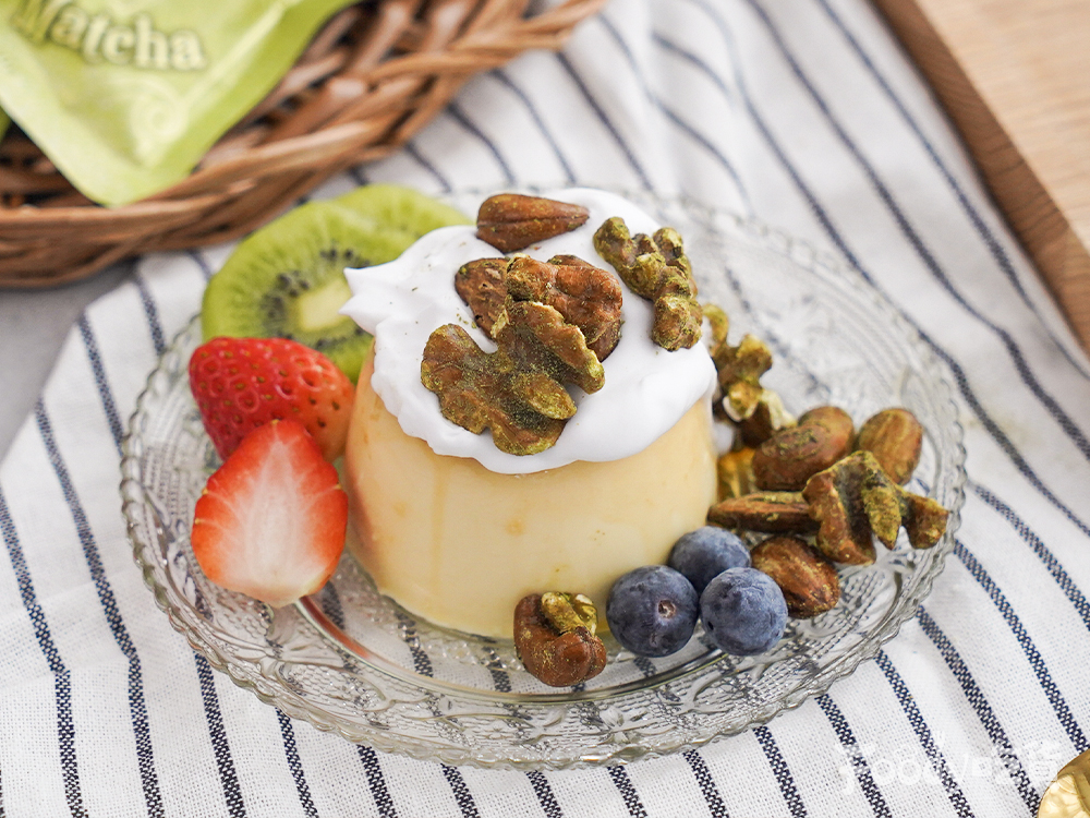 ▼抹茶控會愛這款!「宇治抹茶」口味將富含膠原蛋白的堅果中加入日本進口的宇治抹茶粉, 尾韻帶甘苦的抹茶滋味配上甜口的焦糖布丁一起吃,苦甜交錯的滋味任誰都會愛上~