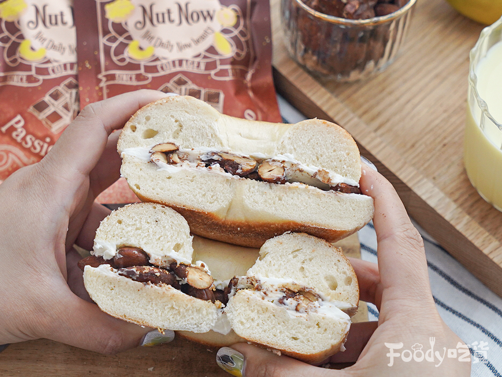 ▼最後就是「法式可可」啦,堅果添加來自法國的無糖可可粉,一口吃下去滿嘴濃厚巧克力香~還可以自己DIY將堅果夾進貝果裡,配上鮮奶油一起吃就是最療癒的下午茶時光!