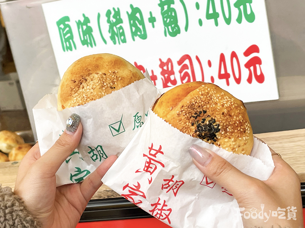 ▼店家的品項相當簡單,只有兩種口味可以選擇,一個是原味(豬肉+蔥),另一個則是起司(豬肉+起司),兩種口味都只要NT$40,身為吃貨的小編覺得這種銅板價位太親民,無須考慮直接通通入手~