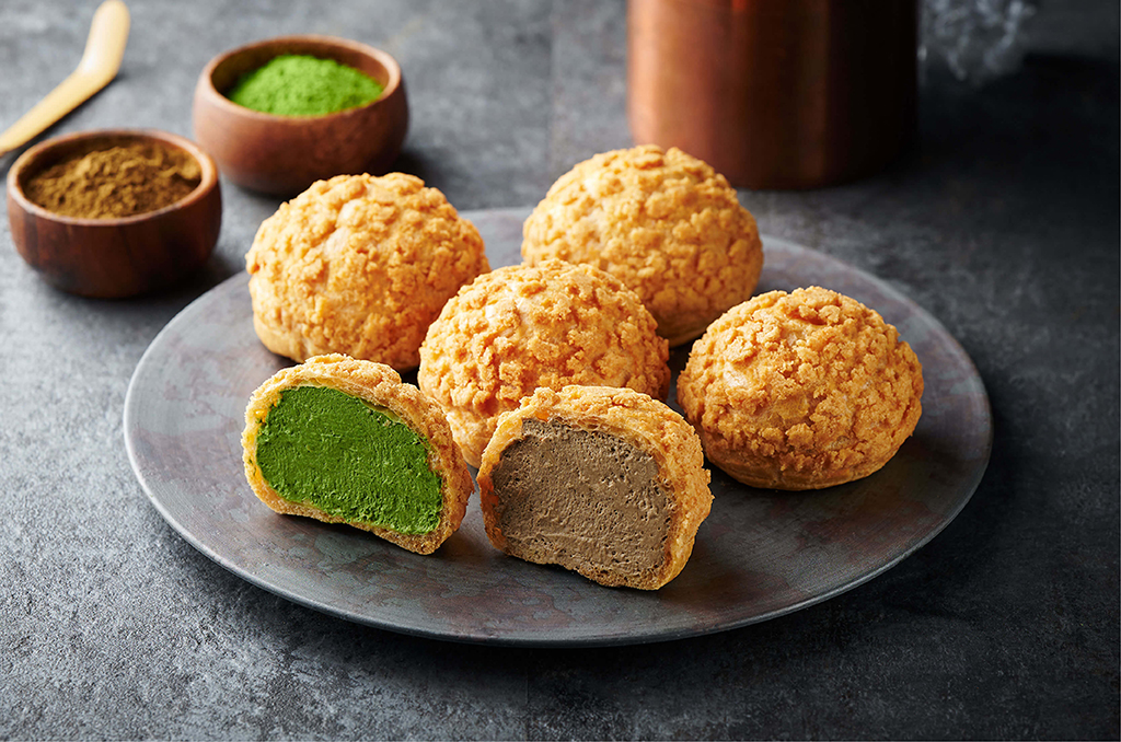 ▼不只有現貨商品,3/26~5/6也推出3款預購商品,「焙茶蒙布朗」選日本焙茶粉,焙煎後風味醇厚,焙茶戚風內夾生乳餡與焙茶慕斯,上層使用焙茶粉製作的焙茶生乳及日本栗子顆粒增加口感,擁有淡雅茶香。「抹茶焙茶菠蘿泡芙」使用35%動物鮮奶油、日本抹茶粉與焙茶製成黃金比例內餡,加上外皮金黃香酥,保證滿足你挑剔的味蕾。另有「醇濃抹茶焙茶千層10入」適合共享。