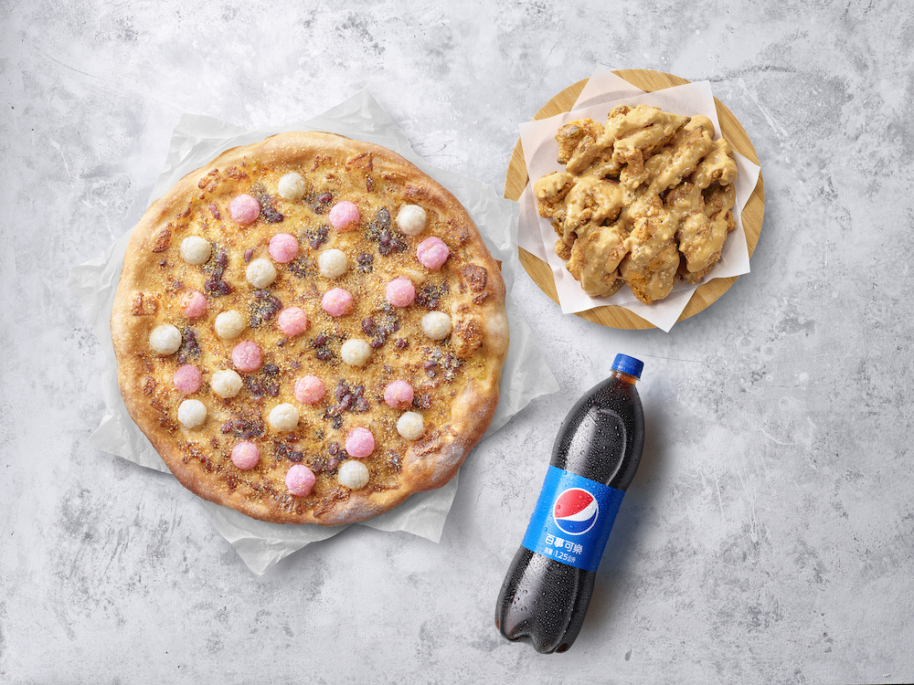 ▼想吃鹹食還是甜點?小孩子才做選擇!必勝客「HOT台味好事花生餐」內含甜在心頭的「花好月圓花生湯圓大比薩」、療癒感十足的「濃郁花生醬唐揚雞」各一份,搭配1.25L飲料一瓶。邀請饕客與必勝客一起感受「台潮辦桌」的美味魅力,迎接好事花生