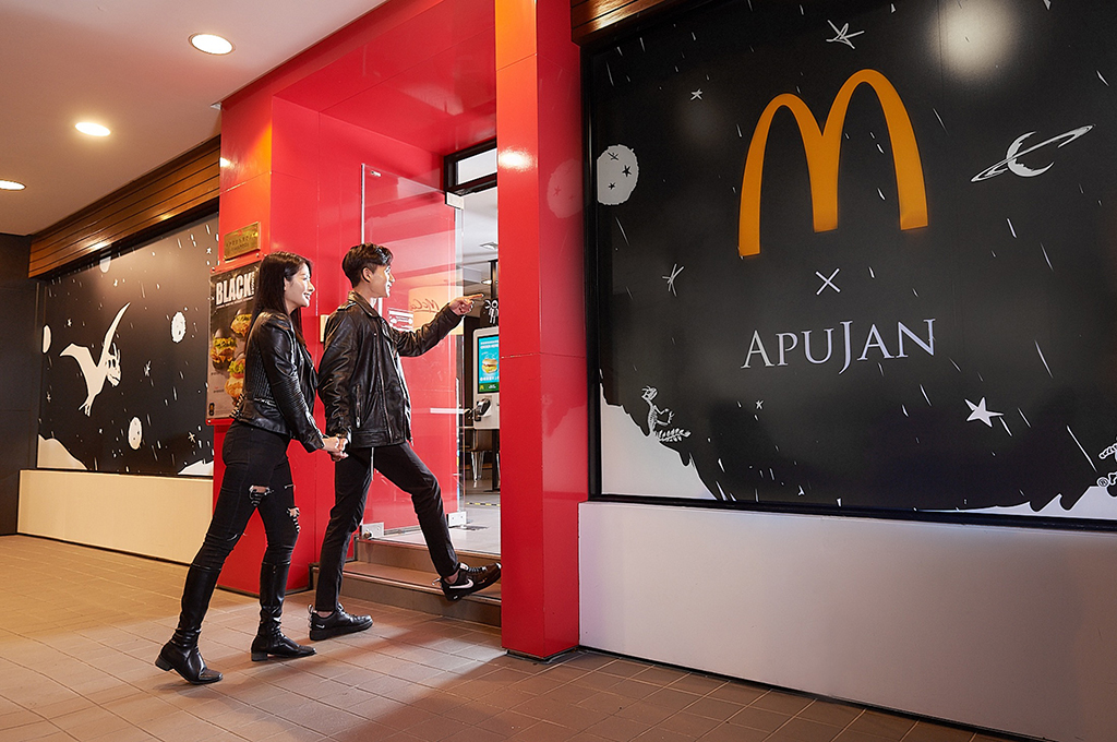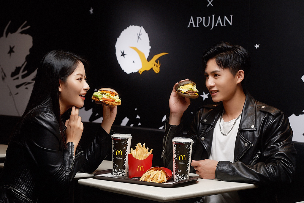 ▼台灣麥當勞2020與時裝設計師品牌「APUJAN」創造「極黑浪潮」,推出後立即受到名人與網友熱烈迴響,2021要帶您前往更深邃的宇宙,同樣以黑色為主題,操刀產品視覺設計,更首度創造《麥當勞All in Black 極黑主題店》將麥當勞林森二餐廳化身「極黑宇宙」,讓您恣意漫遊星系。