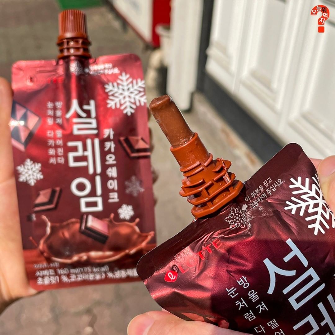 2021年04月03日這、這款商品根本意圖使人長肉肉!韓國超商推出這款「Lotte巧克力冰淇淋」,用喝的方式來吃冰方便又療癒,重點是冰淇淋本身充滿濃郁可可香,讓人整個欲罷不能、吸一包不夠、還想再吸一包啊!