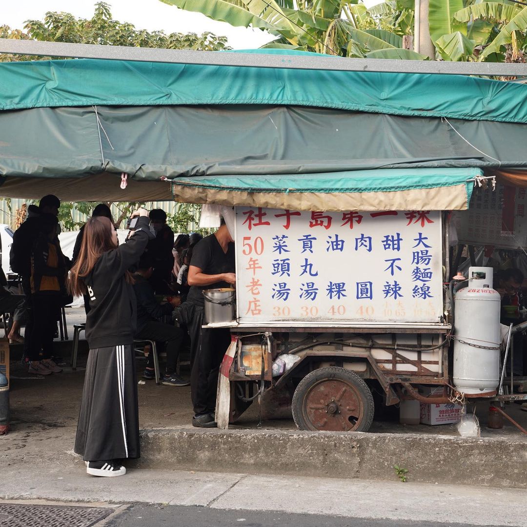▼這家50年老店,主要賣大腸麵線、甜不辣、肉圓等,光看店名「社子島第一辣」就知道這家店有多狂;而且這店名可不是在吹牛,凡是吃過的人都認證「真的很辣」!