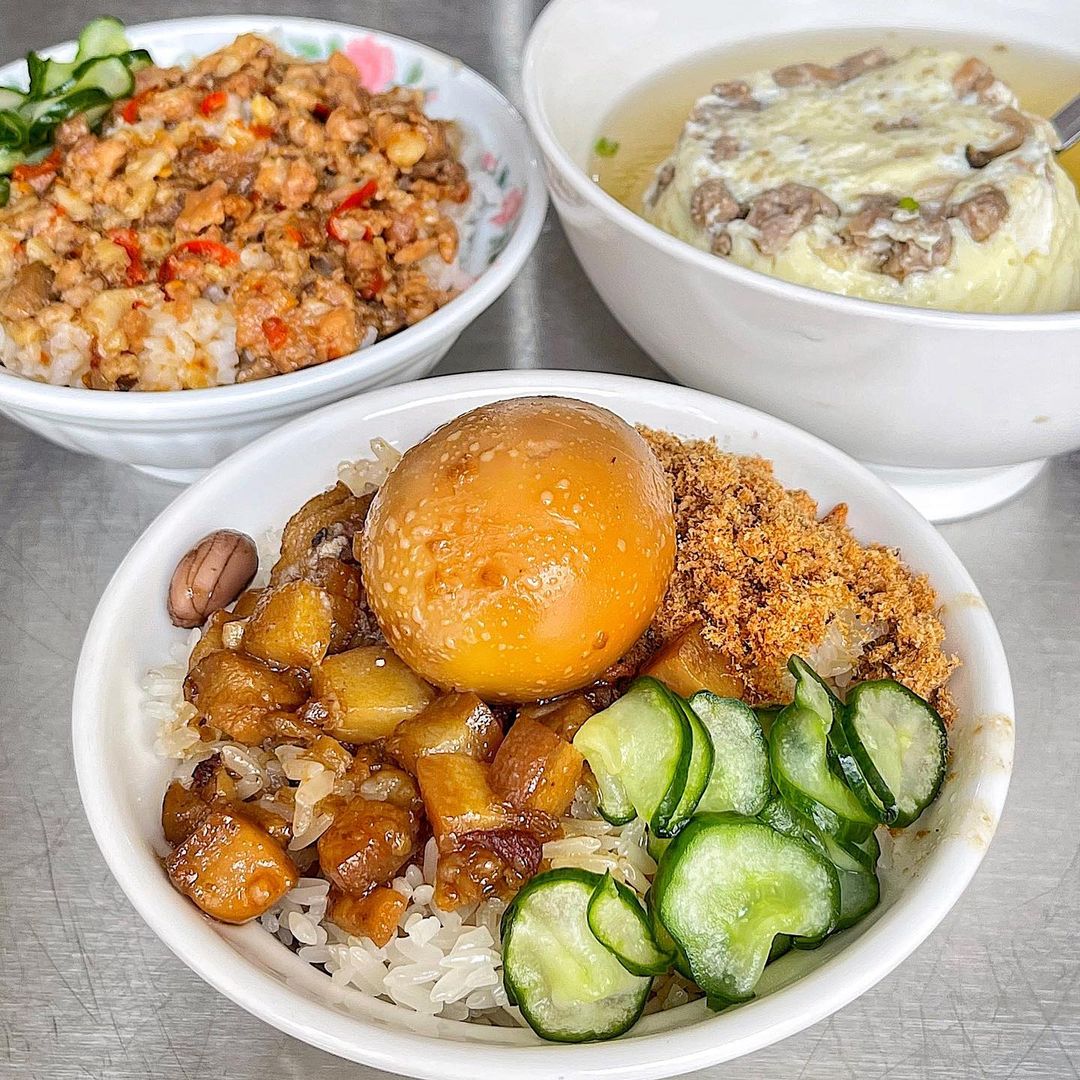 💰辣燥飯$45、肉燥飯$30、米糕$45、蒸蛋湯$40、彈跳肉皮$24