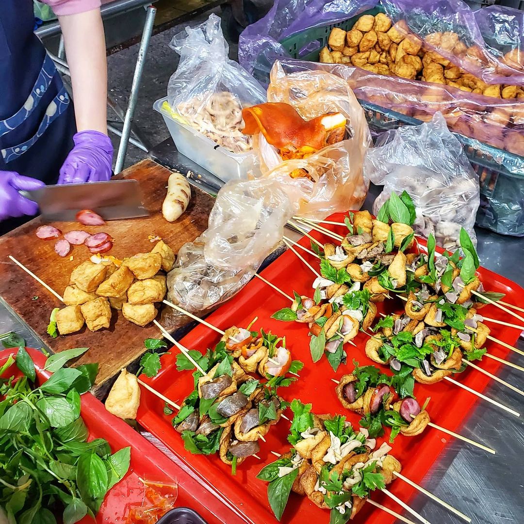 ▼除此之外,也有香腸、米腸、肝連肉、粉腸、豬頭皮等各式配料,可以依喜好選擇要吃什麼口味。重點是重點是,香菜加好加滿,一看就讓芫荽控整個凍未條,想要馬上嗑一串!