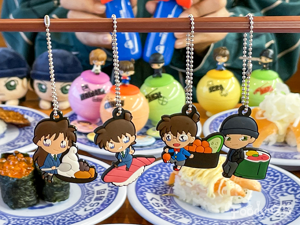 ▼此外4款吊飾之中,更是融入了藏壽司的人氣餐點包含把鮭魚卵當足球的柯南、靠著竹姬壽司的赤井秀一、端著聖代的小蘭到坐上鮪魚壽司的新一,都是不容錯過的必收周邊,大家趕緊記下日期前往藏壽司吧!