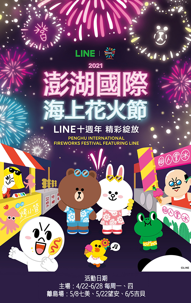2021年04月12日太太太、太古錐了吧!2021澎湖國際海上花火節,這次攜手最萌大明星LINE FRIENDS一起登場啦!不但超人氣角色熊大雨兔兔即將躍上美麗夜空,還推出一系列限定款週邊,鐵粉一定要朝聖!