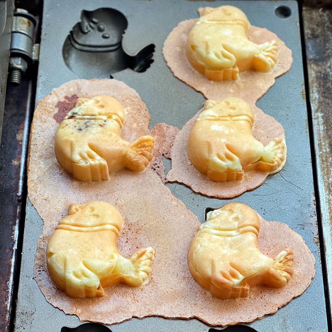 ▼這家位於嘉義的雞蛋糕小攤販「S&S 豹豹燒」,專賣Q版海豹造型的雞蛋糕,看看一隻隻海豹雞蛋糕在烤盤上的模樣真的怎麼看怎麼Q啊!
