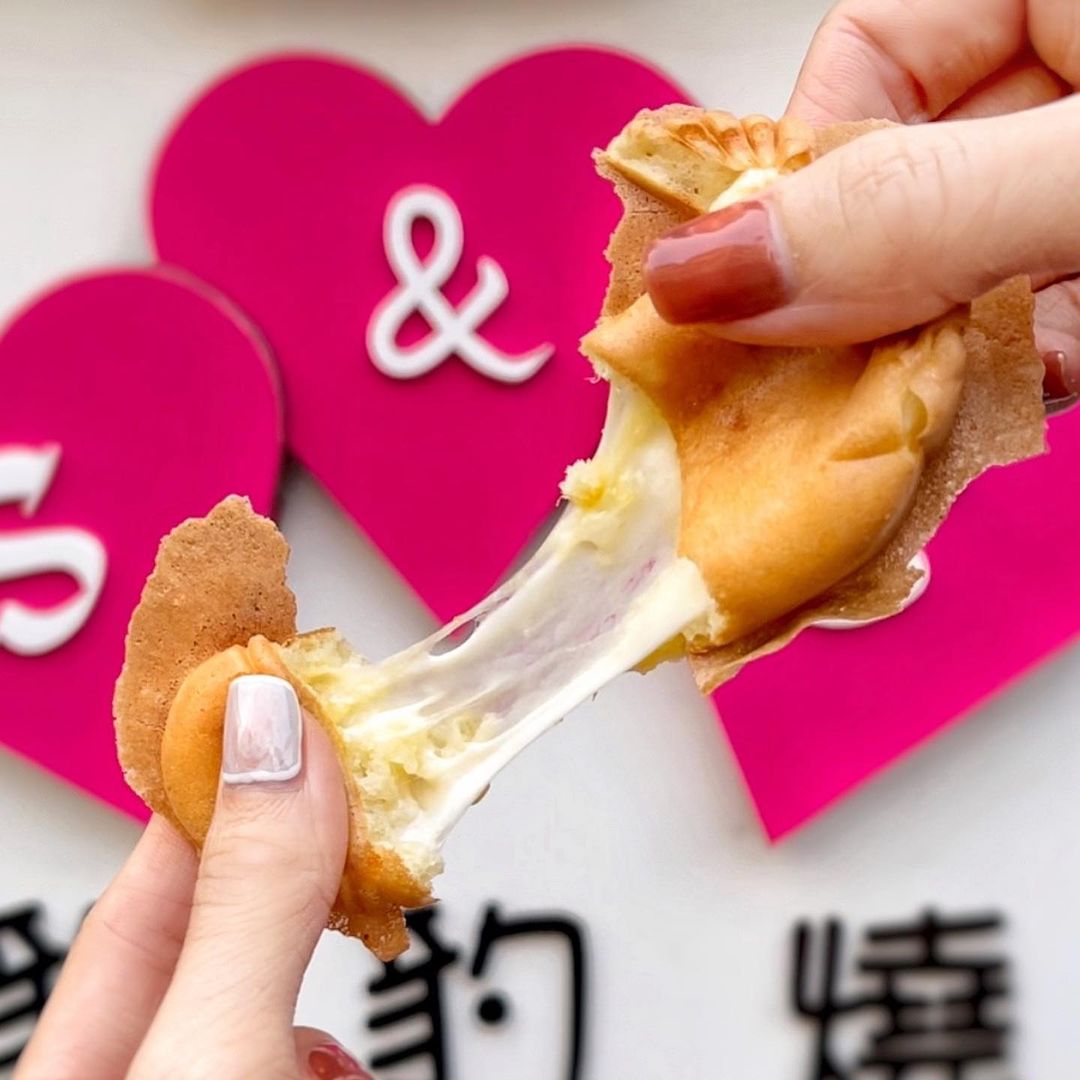 ▼豹豹燒的外皮烤的酥酥脆脆,蛋糕體則鬆軟好入口,重點是口味真的超級多樣,其中必點的人氣口味就是這款乳酪起司啦~一入口是鹹鹹香香起司味,起司還會牽絲實在太療癒啊!