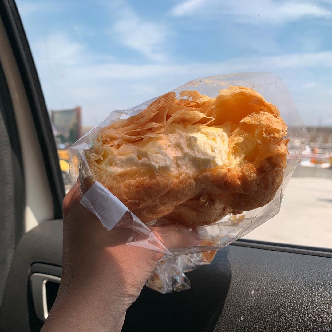 ▼另外,巨大泡芙的外皮酥脆,滿餡的奶霜更是超級邪惡,讓人忍不住一口接一口!而泡芙冰過之後奶霜有如冰淇淋般滑順,別有一番風味!