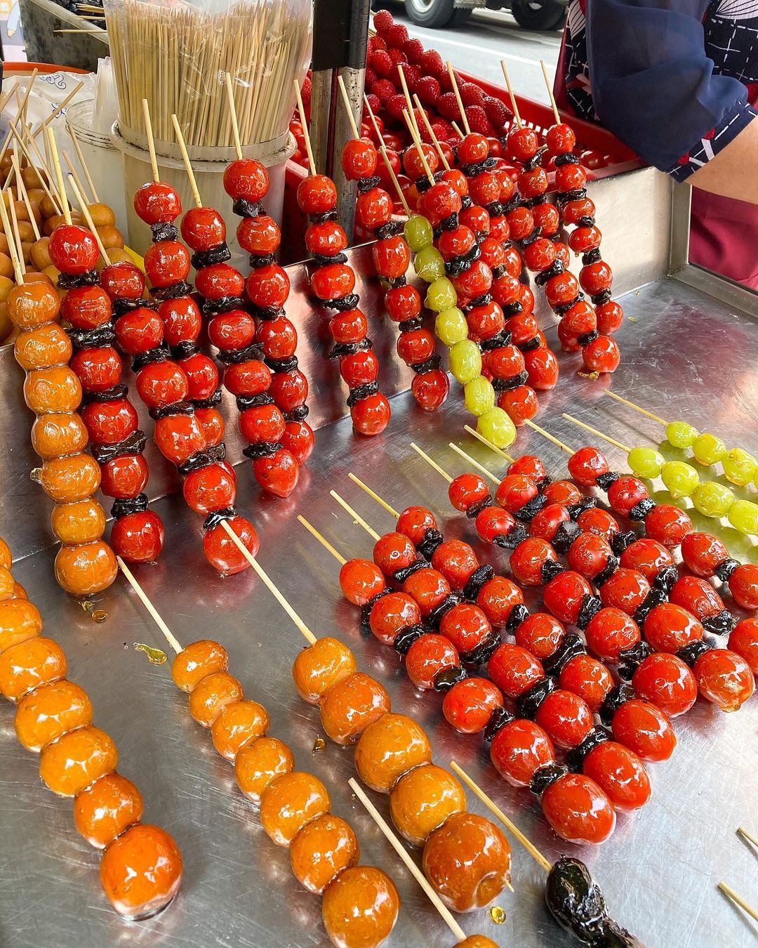 水果種類這麼多,叫人怎麼選呀?糖葫蘆總是帶來滿滿療癒,買個一兩支邊逛夜市邊走邊吃吧~