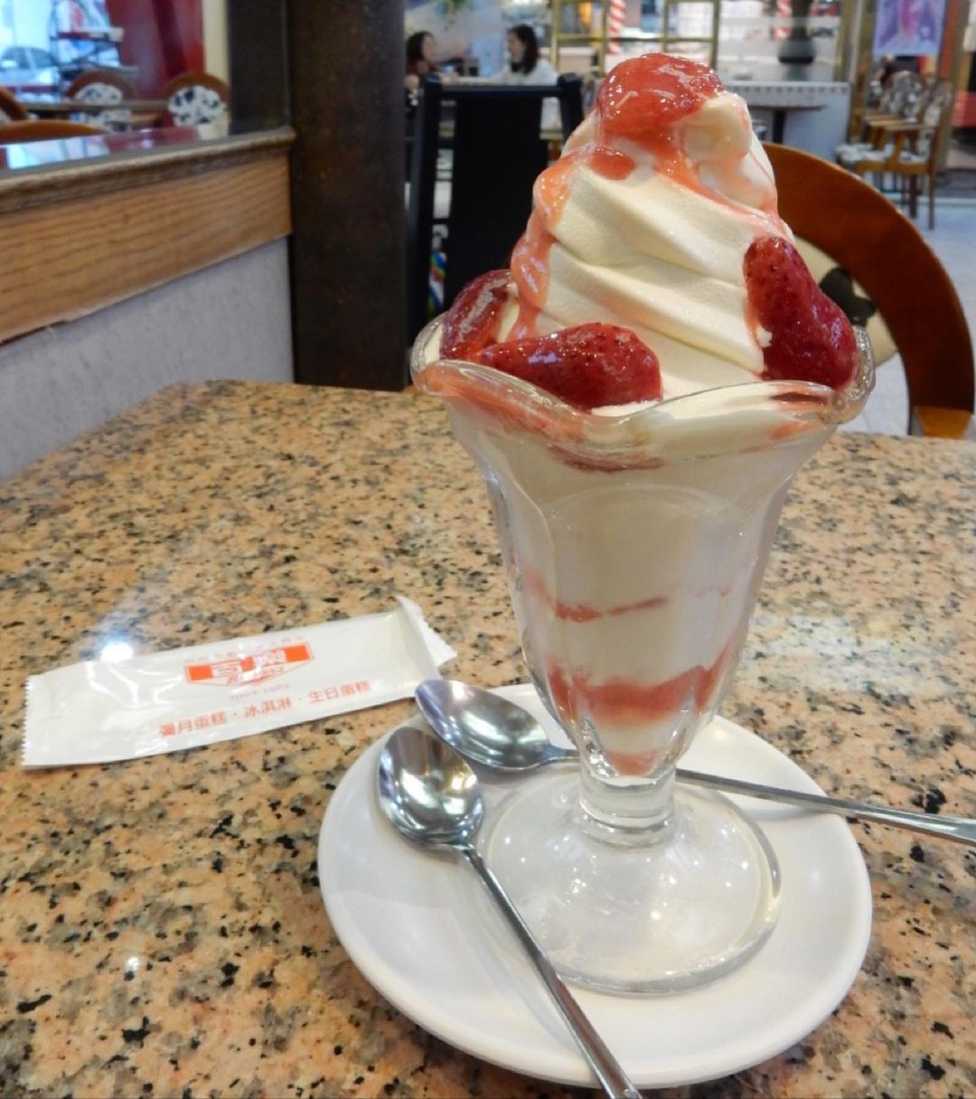 ▼大家最愛點的品項大概就是百樂百福(NT$140)了,以香草冰淇淋為基底,加入一些水果罐頭的水果,再將草莓果醬從上頭淋下,微酸微甜的口感真的超幸福~