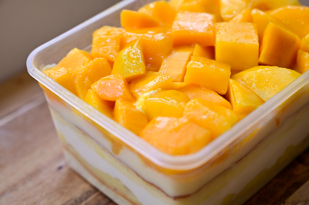 ▼綿密的香草蛋糕上層鋪滿了新鮮芒果,清爽不黏膩的北海道鮮奶油、Q彈雞蛋布丁、濃郁卡士達醬做為夾層,多層次的口感瞬間豐富了味蕾,讓人一口接一口欲罷不能。