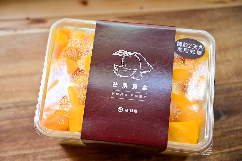 ▼此次橘村屋人氣商品「芒果寶盒」採用屏東枋寮產地直送的愛文芒果,果肉飽滿細緻,一咬下去滿滿的芒果香氣散發而出,香甜多汁好~幸~福!